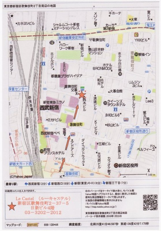 1月30日(土)12:00~15:00 11:45~入場開始 開催場所 Le Castel (ルーキャステル) 新宿区歌舞伎町2-37-5 日新ビル4階 TEL:03-3202-2012 料理6~7品 フリードリンク 参加費は4000円でしたが、3000円になりました。 その分、お食事には期待はできませんので、その辺をご承知くださいませ^^; 残金の1000円については、当日返金いたします。 参加者の方々にはメールに地図を添付して送りましたが、 Faxで送って欲しい場合は連絡を下さい。 PR 今年もあと少し、皆様いかがお過ごしでしょうか。
